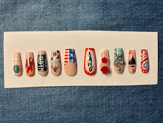 All custom sets require you to use my sizing guide OR sizing kits for a precise fit. You can chose your shape and length, and I'll make your hive nail inspo come to life.