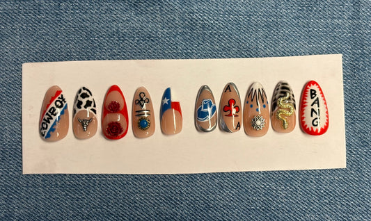All custom sets require you to use my sizing guide OR sizing kits for a precise fit. You can chose your shape and length, and I'll make your hive nail inspo come to life.